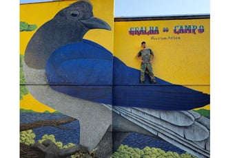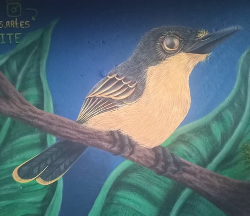 Painel finalizado no dia 26/09/24 na ONG Contagie em Salesópolis SP, mostra um passarinho residente da ONG.
