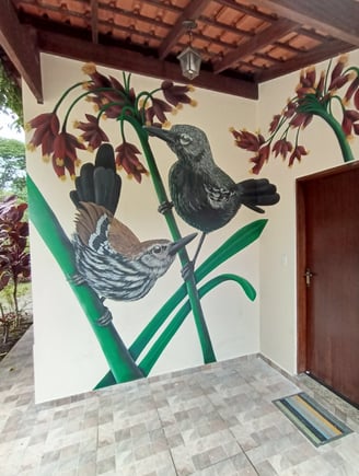 Painel finalizado no dia 22/02/24 no Sítio macuquinho em Salesópolis SP, baseado em uma foto que foi tirada no próprio lodde de observação de aves em que foi pintada.