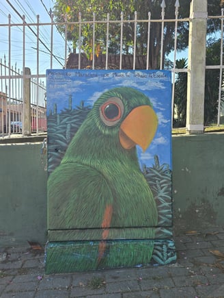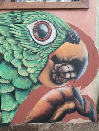Painel finalizado no dia 11/06/24 na ASM Cambaquara em Ilhabela SP, esse papagaio é um dos simbolos dessa ONG