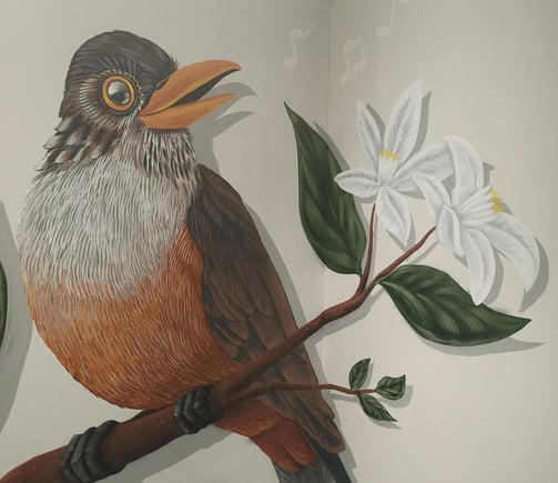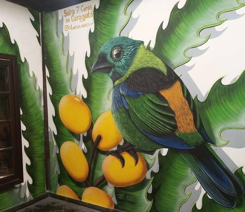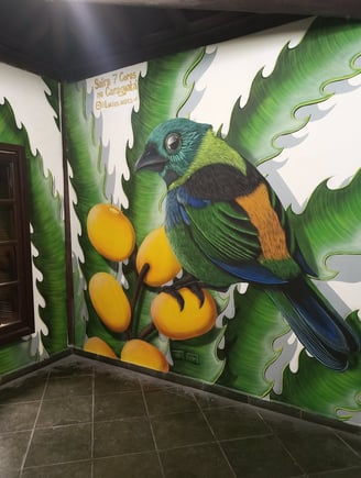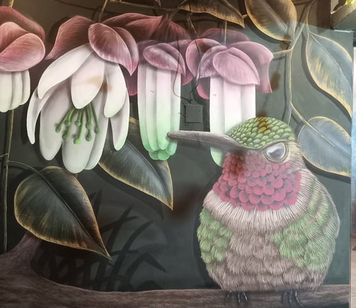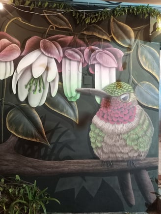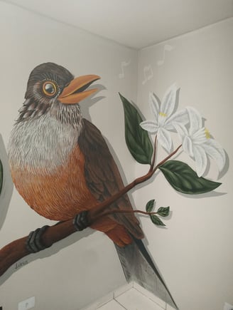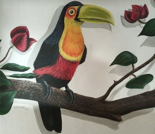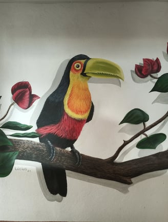 Painel finalizado no dia 16/09/24 no Hotel Vila Adria em Ilhabela SP, durante a hospedagem lúcius pintou o passarinho preferido da gestora do hotel