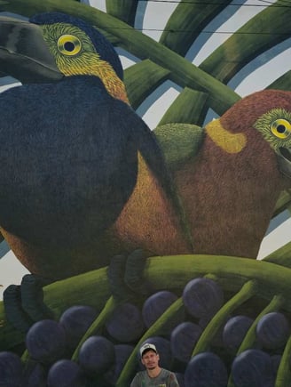 Painel finalizado no dia 16/09/24 ao vivo durante a BirdWeek em Ilhabela SP, não foi pintada em uma parede e sim em um painel durante 2 dias do evento sendo o maior painel pintado ao vivo por lúcius